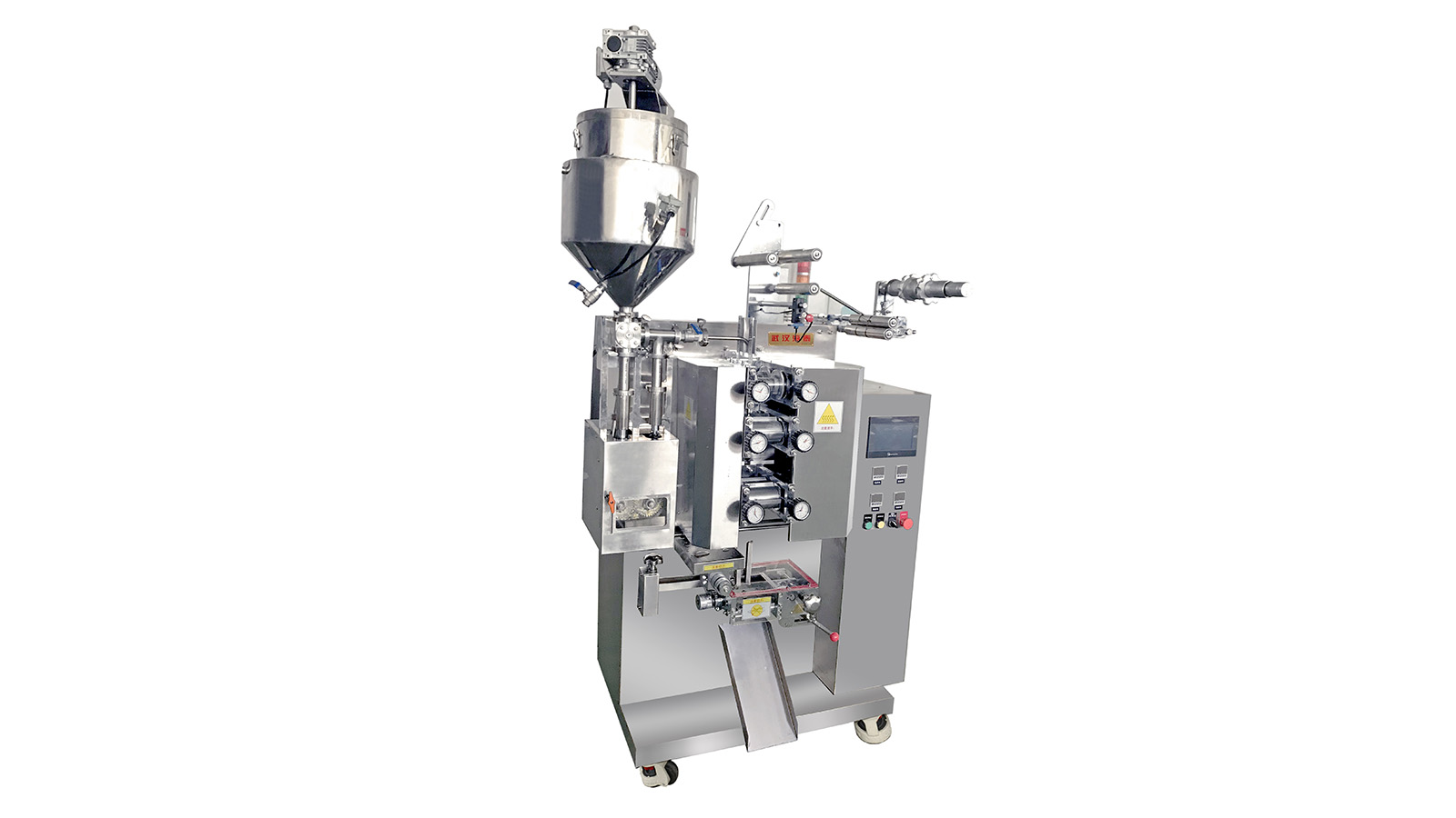 概述:本系列包装机适用于各类膏体、粘稠体、酱体等物料实现自动包装而设计的三段辊筒的立式包装机械,可实现三边封口、四边封口的包装。